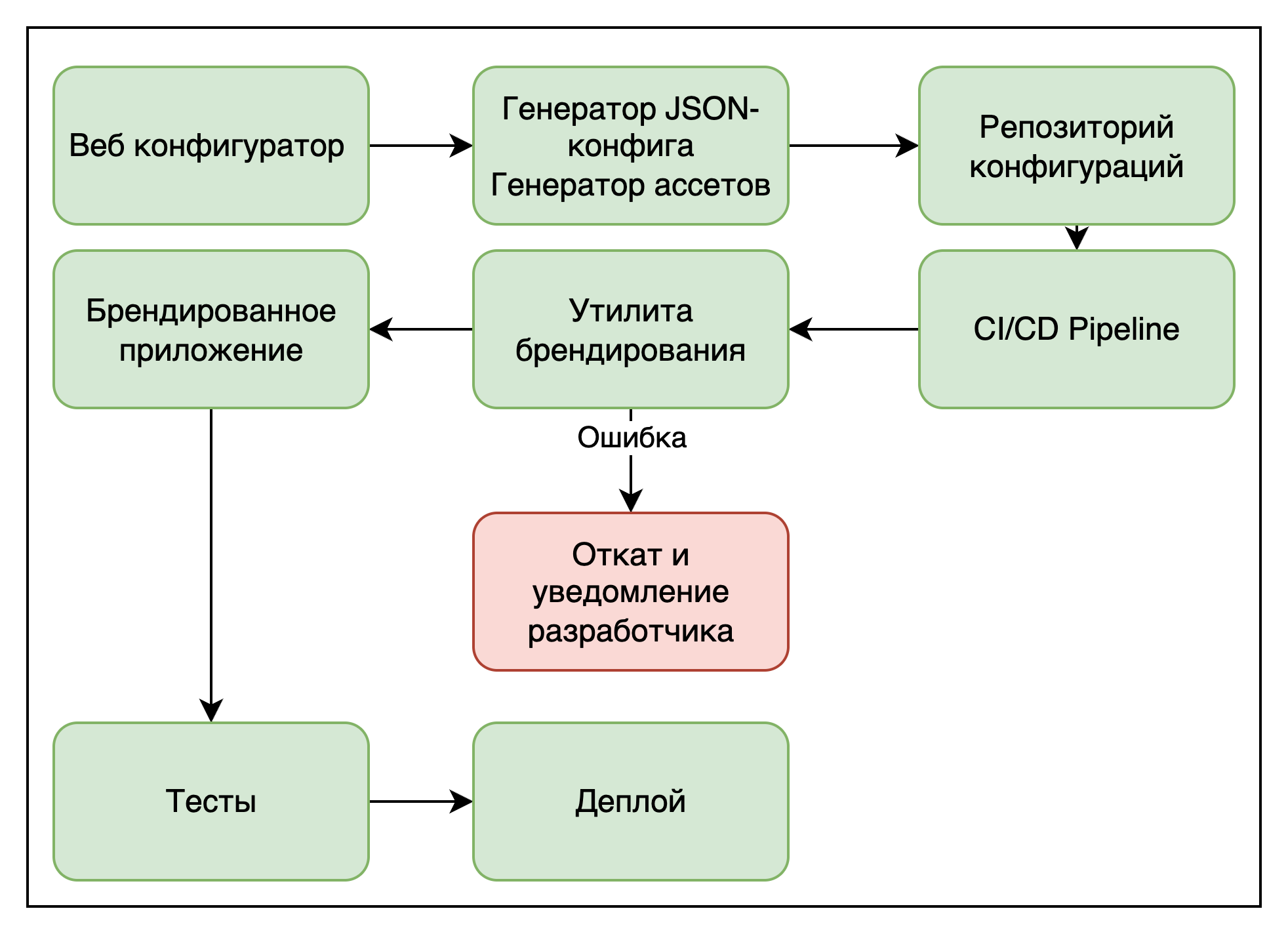 - Конфигурация бренда может быть некорректной, поэтому делаем генерацию конфигурации по описанному контракту, без ручного изменения
